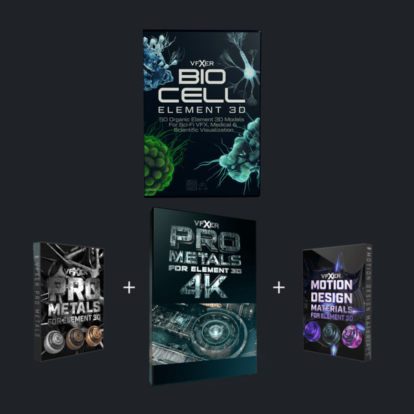VFXER PRO Metals 4K is an all-new set of 100 materials designed specifically for professional designers who need the highest quality material for their Element 3D project. VFXER Bio Cell Bundle includes VFXER Bio Cell Element 3D Model Pack and all 3 of their unique Element 3D material packs with over 300 materials PRO Metals 4K Motion Design Materials PRO Metals a saving of 157. 99 FreelancerHobbyist License 99 499 Studio License 2-9 Users.